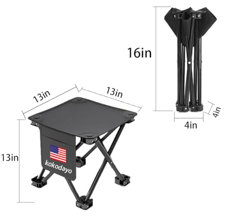 Camping Stool, 13 Inch Portable Folding Stool for Outdoor Walking Hiking Fishing 600Lbs Capacity with Carry Bag, Black