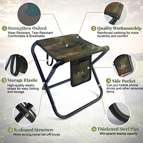 Upgraded Portable Folding Stool, 13 Inch Camping Stool for Adults Fishing Hiking Gardening and Beach with Carry Bag, Hold Up to 450lbs[Camo]