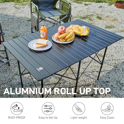 EVER ADVANCED Camping Table, Fold up Lightweight, 4-6 Person Portable Roll up Aluminum Table with Carry Bag for Outdoor, Support Up to 110LBS, Black