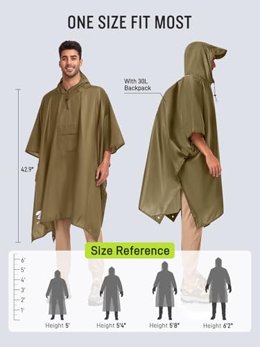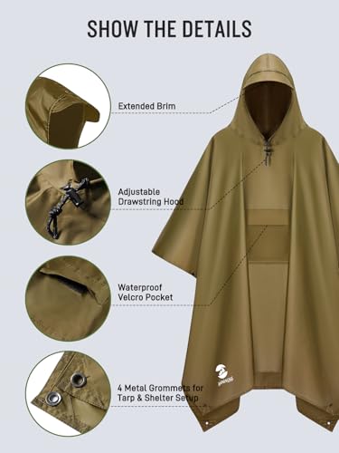 SaphiRose Extra Thick Hooded Rain Poncho Double Layer Waterproof Raincoat Jacket for Men Women Adults