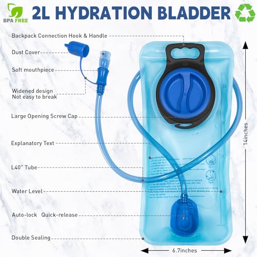 2L Hydration Bladder, Water Bladder for Hiking Backpack, Leak Proof Water Reservoir Storage Bag, BPA-Free Hydration Pack Replacement for Cycling, Hiking, Camping, Hunting, Running, Blue