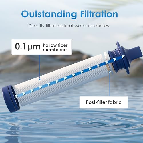 Recyclable Straw: With innovative backwash purifier function, the inside of the Water Filter Straw can be kept clean at all times and it is recyclable, safe and pollution-free. If the water flow decreases or the filter has been used for a long time, you can remove the mouthpiece, flush it with clean water. (Standard water bag can be used or pop bottle with thread diameter of 27.5mm can be filled clean water for backwashing the filter straw.)
