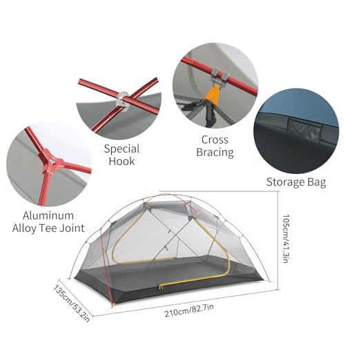 Big Large 2 Person Tent : Tent Dimension: 82.7 x 53.2 x 41.3inch, More than 30 square feet area for sleeping, Perfect 2 person tent for hiking, backpacking and camping . Good stability, anti-UV,Anti-wind, anti- rainstorm.
