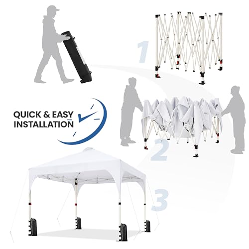 Yaheetech 10×10 Pop Up Canopy Tent with Vent, Easy Set Up Tent, Instant Sun Shelter Canopy with Wheeled Bag, 4 Sandbags, 12 Stakes & 4 Ropes, for Parties, Beach, Outdoor, White