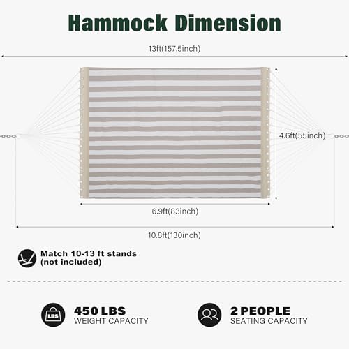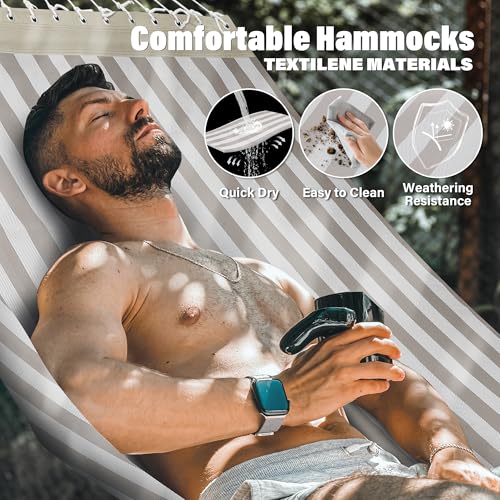 Patio Watcher 13 FT Quick Dry Textilene Hammock – Outdoor Double Hammock – Heavy Duty for Outside – 450 lbs Capacity – Beige White