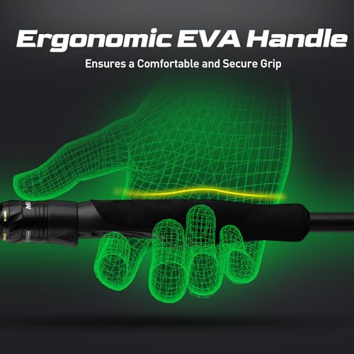 Carbon Fiber Ergonomic Handle – Featuring a carbon fiber ergonomic handle, the M1 ultra light fishing spinning rod is light, ultra-sensitive, and super comfortable. The EVA + carbon fiber handle captures the subtlest bites, ensuring no fish slips away