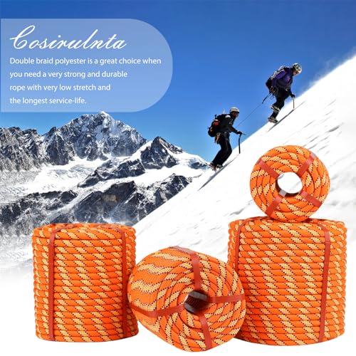 Double Braid Arborist Rope Orange(1/2 in x 50 ft) Arborist Rigging Polyester Rope – 48 Strand Rope Swing for Tree Bull Rope for Outdoor, Climbing, Swing, Sailing (Orange, 1/2 in x 50 Ft)
