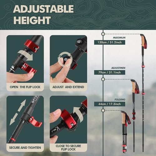 【Easy To Fold】:With a folded size of 17.3”, the collapsible hiking poles are compact and easy to carry, making them ideal for hikers, backpackers, and adventurers to ensure you’re always ready for your next trip.