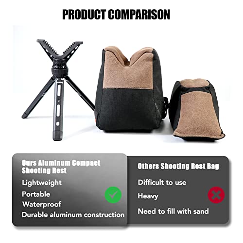 【Compact & Portable】Compact design allows for portability and packing, easy to store in your backpack, even in your pocket. You will be impressed how impact but stable it is. Lightweight to carry, and ready in an instant, this rifle rest is an ideal accessory for any obsessed shooter. Perfect replacement for shooting rest bag, no need to carry along a weighty beans bag for the front sight.