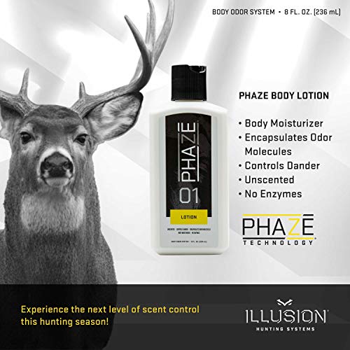 Scent Control Body Lotion | PhaZe Body Odor System by Illusion | #1 Deer Hunters Scent Control | Scent Elimination | Scent-Free Body Lotion for Hunting | 8oz. | Hunting Accessories