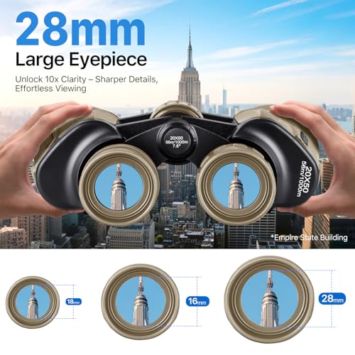 Powerful Binoculars: The binoculars for adults have 20X power magnification, 50mm large objective lens, large field of view of 1000 yards, making them good for fast-moving subjects. They are easy to operate binoculars for adults and kids, perfect binoculars for bird watching, hunting, travel, opera, concert, sports games, safari.