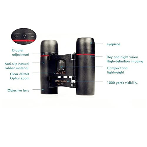 30×60 Portable Mini Binoculars, Wide View Angle Folding Binoculars Telescope with Low Light Night Vision for Outdoor Bird Watching Camping Hiking Traveling