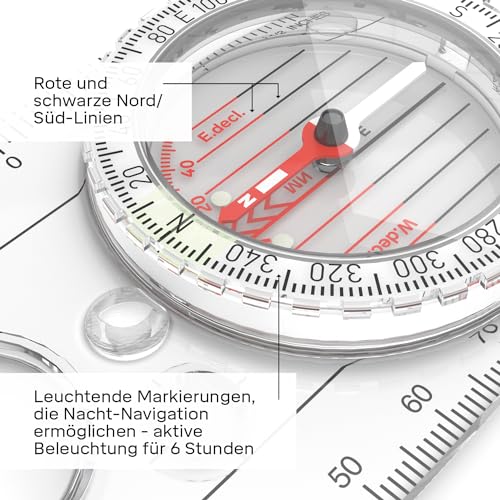 The Expedition 4 compass is suitable for night navigation thanks to its luminous markings. It offers six hours of illumination after activation in light, making it a reliable choice for night time adventures.