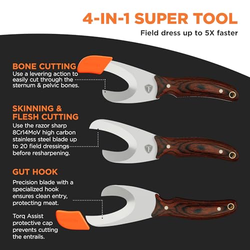FIELD DRESS UP TO 5X FASTER – Our 4-in-1 Super Tool does it all. A hunting knife with gut hook, bone cutter, flesh cutter, and skinning knife – enabling you to perform under the most demanding conditions.