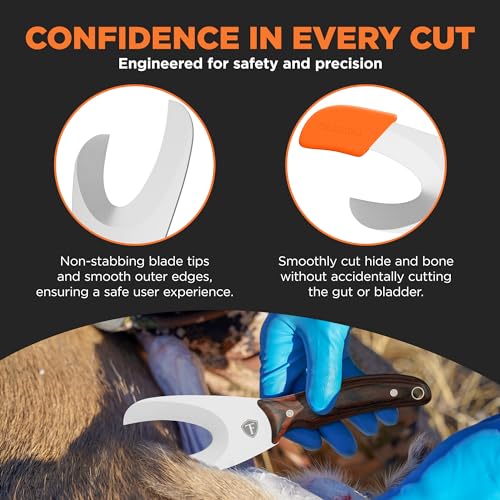 UNPARALLELED SAFETY – Non-stabbing blade tips and smooth outside edges, make the Super Tool exceptionally safe to handle when deer skinning and completing other field dressing tasks. Each Super Tool also includes a Ballistic Nylon Sheath!