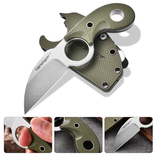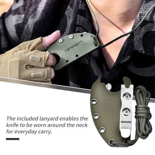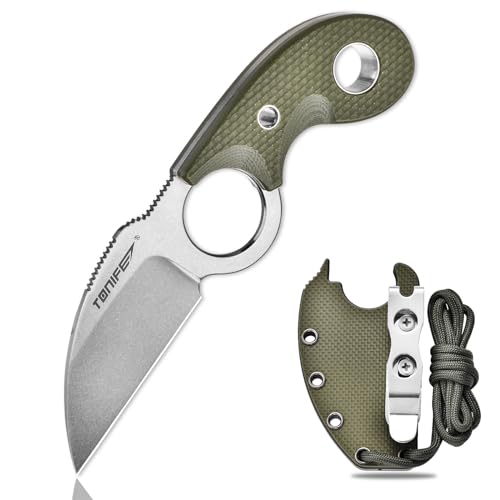 TONIFE Small Fixed Blade Knife Full Tang EDC Camping with Sheath Lanyard and Clip, Blade Length 2.17″,2.5 oz.with Sheath(Green – Stonewash)