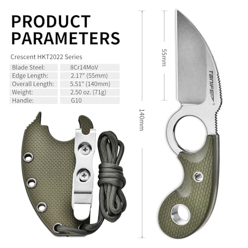 Small Knife with Sheath: TONIFE Crescent is a perfect small fixed blade knife suitable for your EDC equipment; The total length is 5.51 inches.