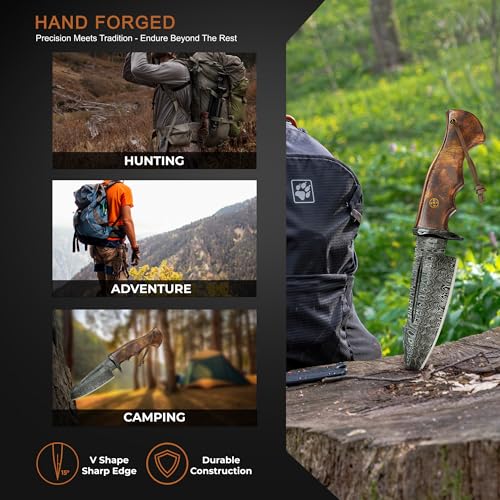 Comfortable grip and durable – comfy wooden handle with 2-finger strong grip of our skinning knife for hunting add a touch of luxury to your outdoor adventures. Plus, our tactical knife with holster ensures durability and hassle-free carry every time. Adventure awaits – are you ready?”