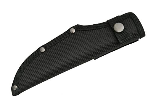 This deer outdoorsman skinning knife by Szco supplies is 8 inches in overall length. The blade is made of stainless steel with a deer etched on the tang. This is a full tang knife with a wood handle. This knife comes with a black nylon sheath.