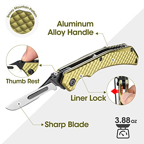 Swiss+Tech EDC Knife, Folding Pocket Knife with 5PCS Razor-Sharp Replaceable Blades, Belt Clip, Liner Lock & Aluminum Alloy Handle,Skinning Knives for Hunting, Survival, Fishing, Outdoor Skinning Deer