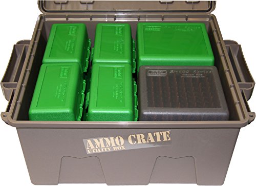 Designed for ammo storage, but perfect for storing shooting, hunting or survival gear. Two extra strong handles make it easy to carry upto 85 pounds of gear. Designed to be stacked high, using molded-in stacking ridges. Four tie down points for ATV attachment. Features MTM’s tongue and groove O-Ring seal system for a water-resistant dry storage. Double padlock tabs along with two strong latches make these ammo crates the perfect solution for many storage needs. Made in the USA, with high-impact polypropylene plastic.