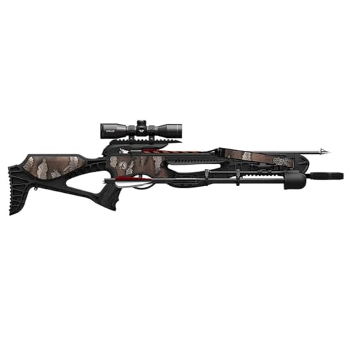 READY TO HUNT PACKAGE: Includes 4x32mm Multi-Reticle Scope, Lightweight Side-Mount Quiver, Two 20″ Aluminum Arrows, and Lubrication Wax. Ships mostly assembled. Cocking device not included. Color is Brown Tear