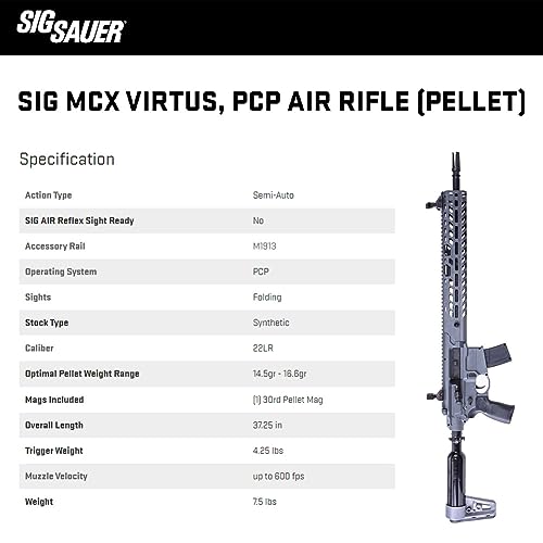 Sig Sauer MCX Virtus PCP Pellet Air Rifle | 30rd RPM .22LR Caliber Semi-Automatic Pre-Charged Pneumatic Rifle for Target Shooting Training