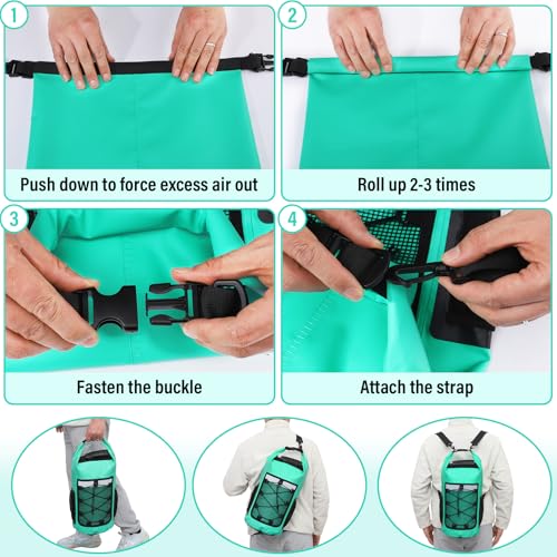 Easy to Use: After storing items in backpack, just fold the bag down 3-4 times and fasten the side buckle to complete the seal. The shoulder strap is detachable and can be carried on both shoulders or one shoulder