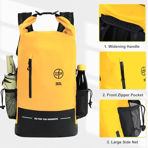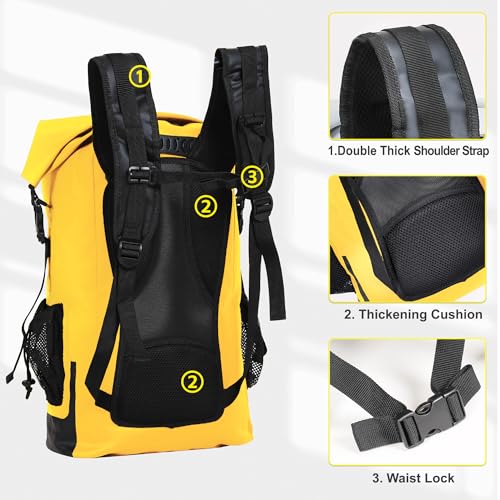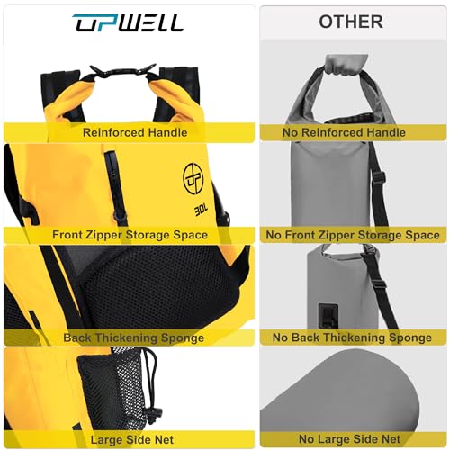 UPWELL 30L Waterproof Dry Bag Boating Backpack for Travel Hiking Camping Kayaking Hiking Swimming Floating Submersible Dry Bag yellow